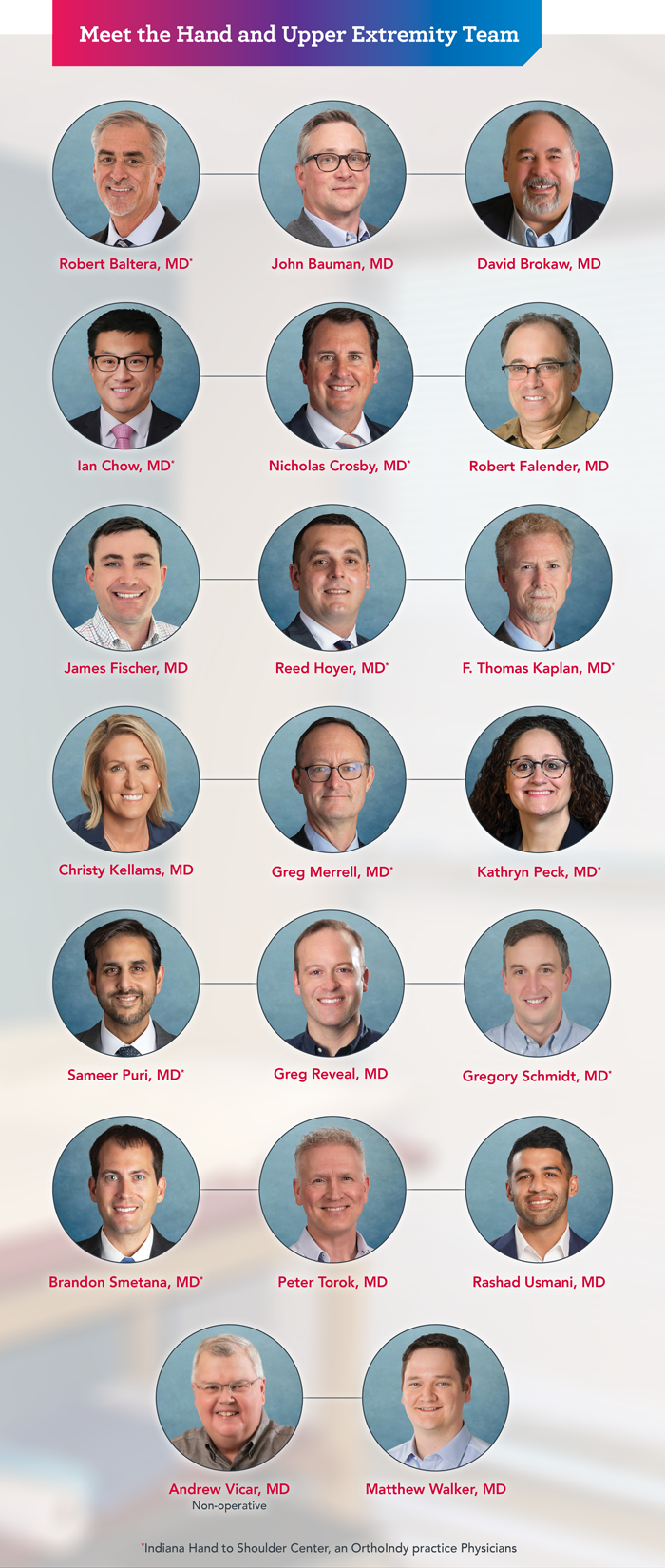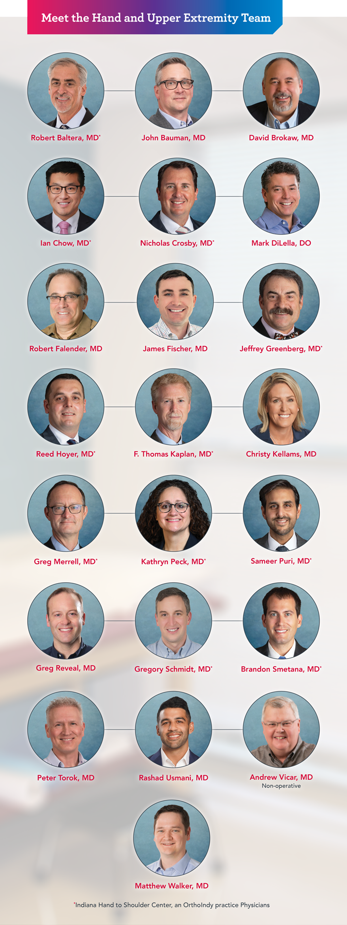 At OrthoIndy our hand, wrist and elbow specialists work as a team to make sure your injury doesn’t hold you or your child back from daily activities. From our urgent care clinics to our physical therapists, we focus on getting you back to work or your child back to sports.