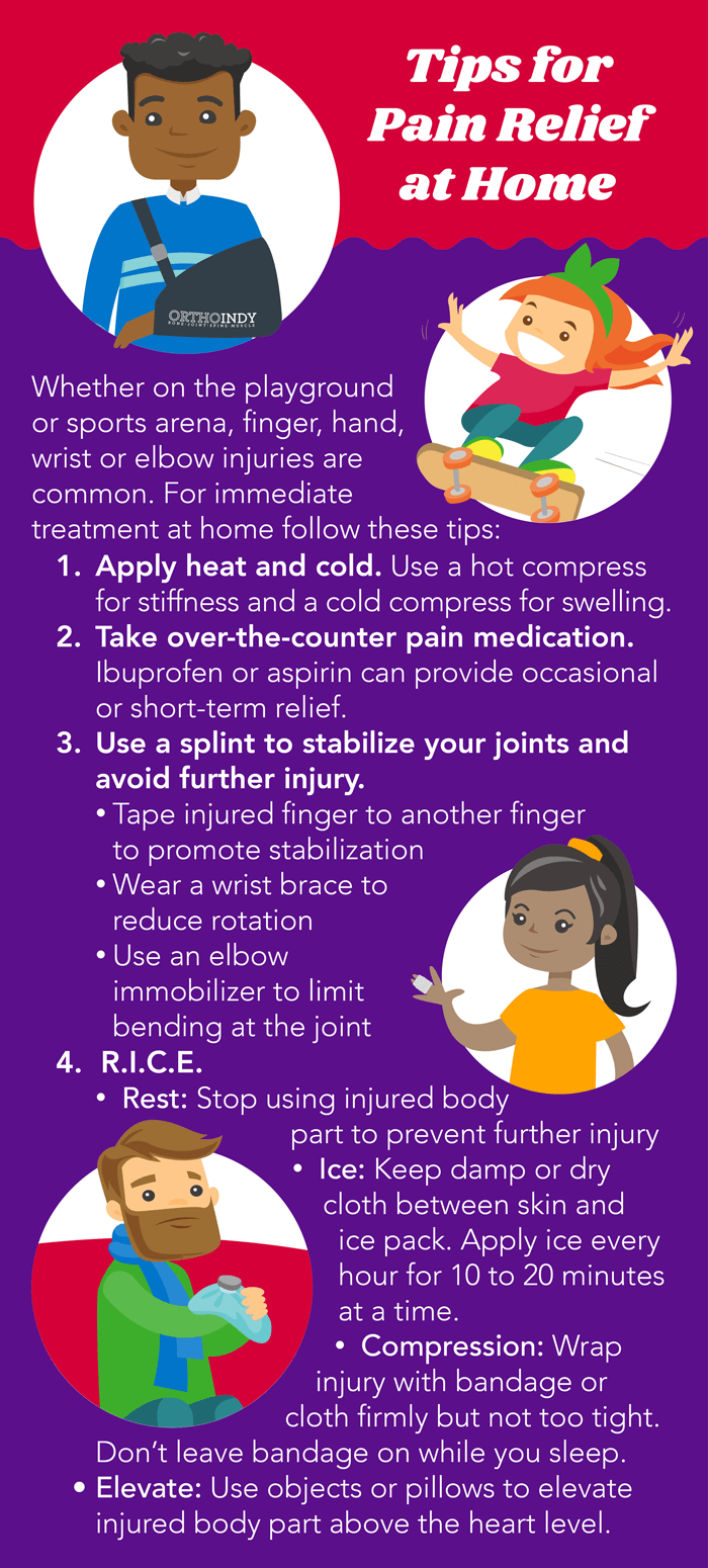 - Tips to pain relief at-home for finger, hand, wrist or elbow injuries